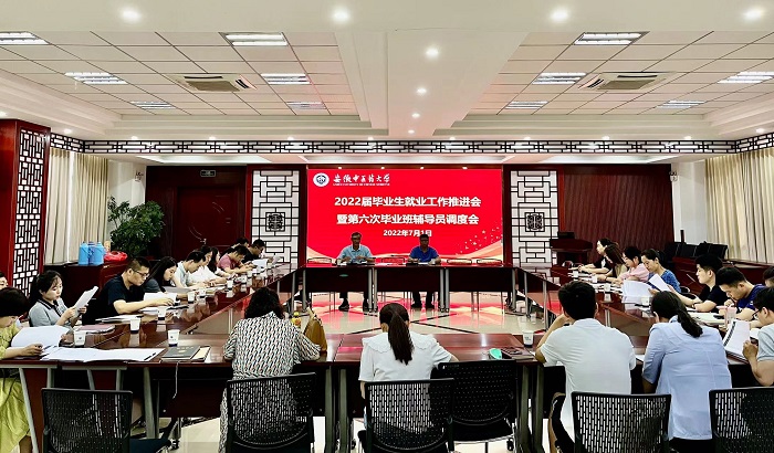 詹钟华通报了2022届毕业生就业状况调查进展和毕业去向落实进展,布置了《安徽中医药大学2022年暑期促进就业行动计划》。