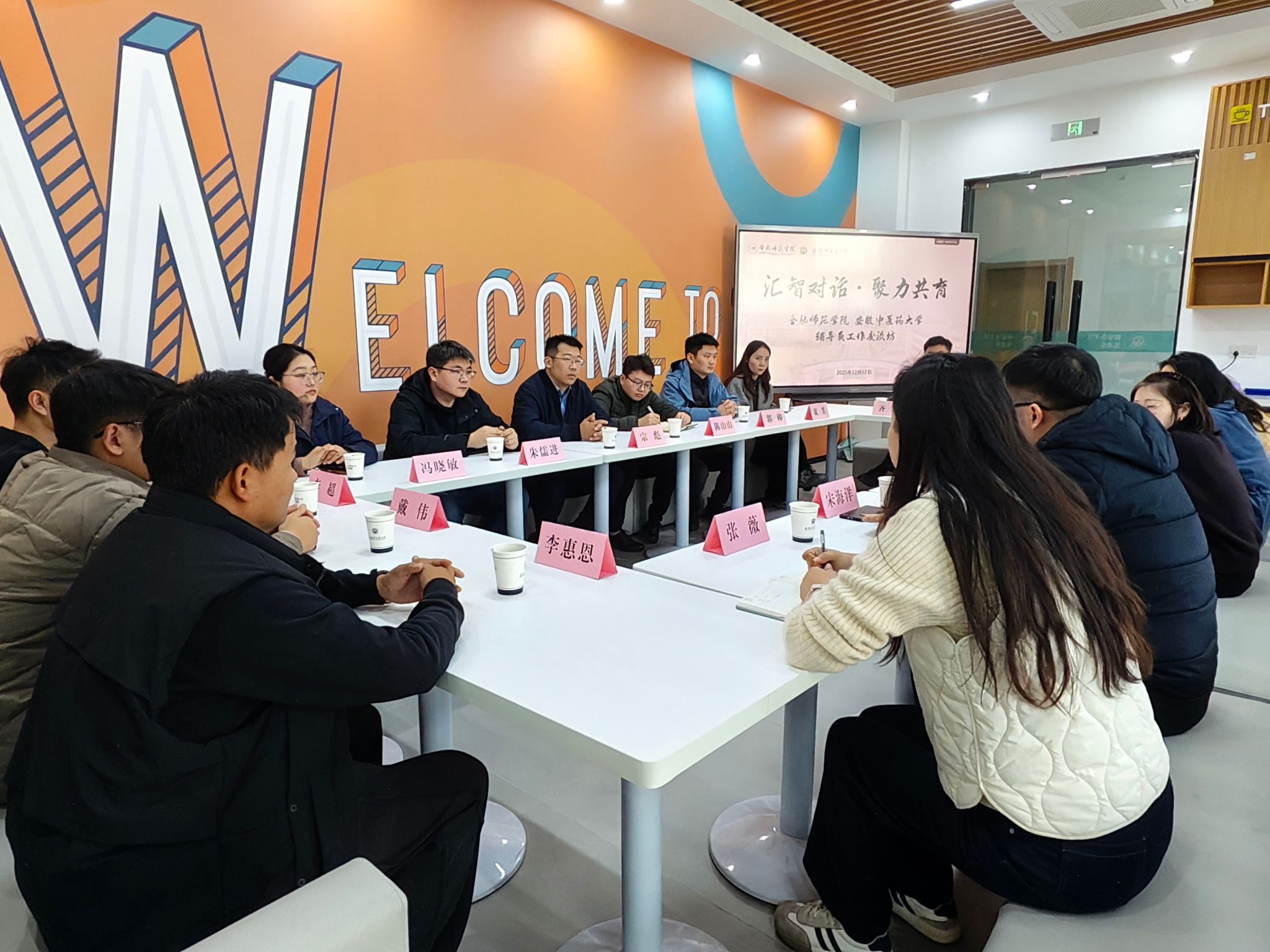 为学习借鉴兄弟高校辅导员工作的先进经验,进一步提升学生工作队伍的专业素养与育人实效,12月17日下午,学工部(研工部)与合肥师范学院学生工作部联合举办“汇智对话·聚力共育”校际辅导员工作交流坊。合肥师范学院11名辅导员代表应邀来校参与交流。