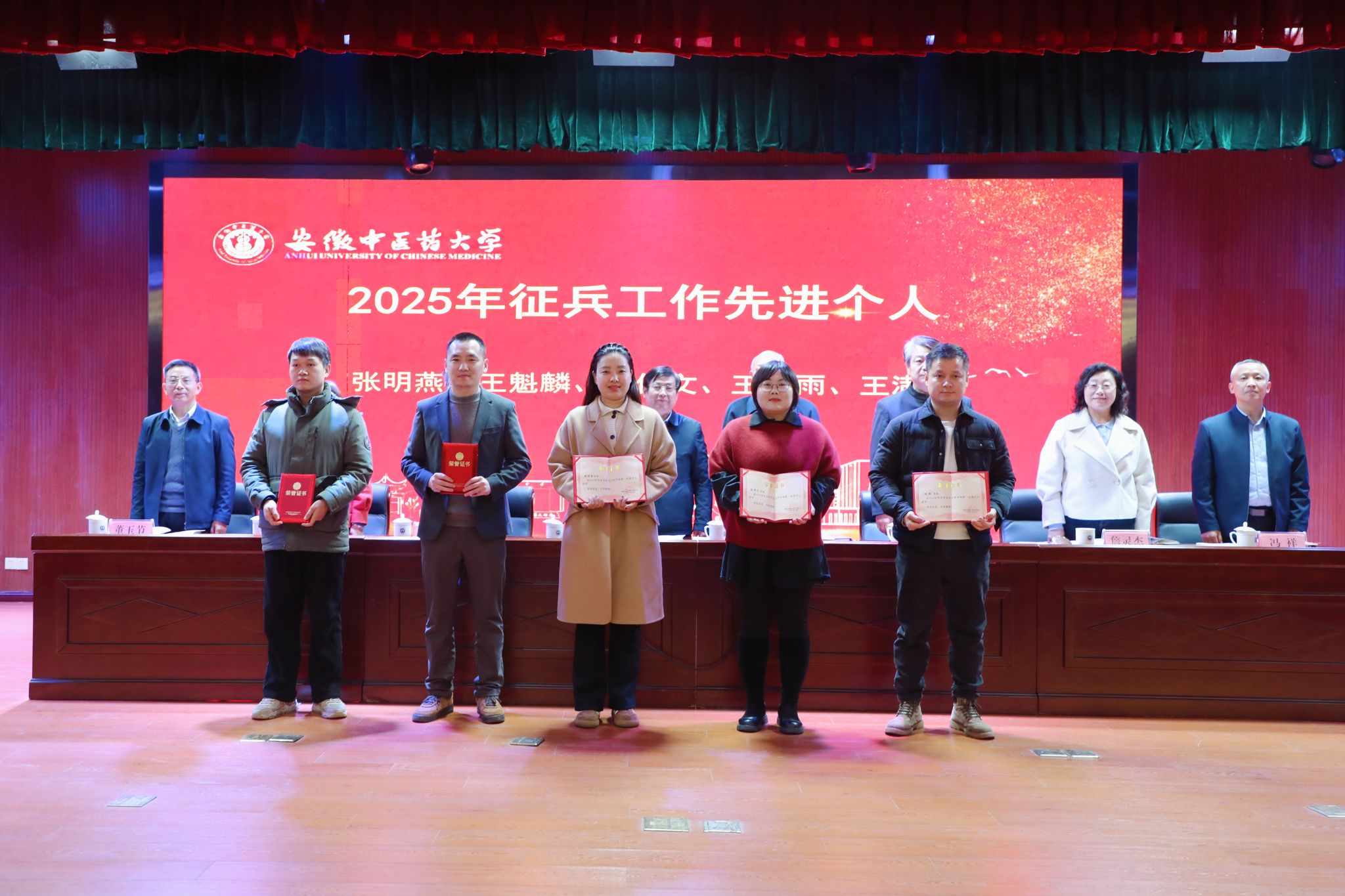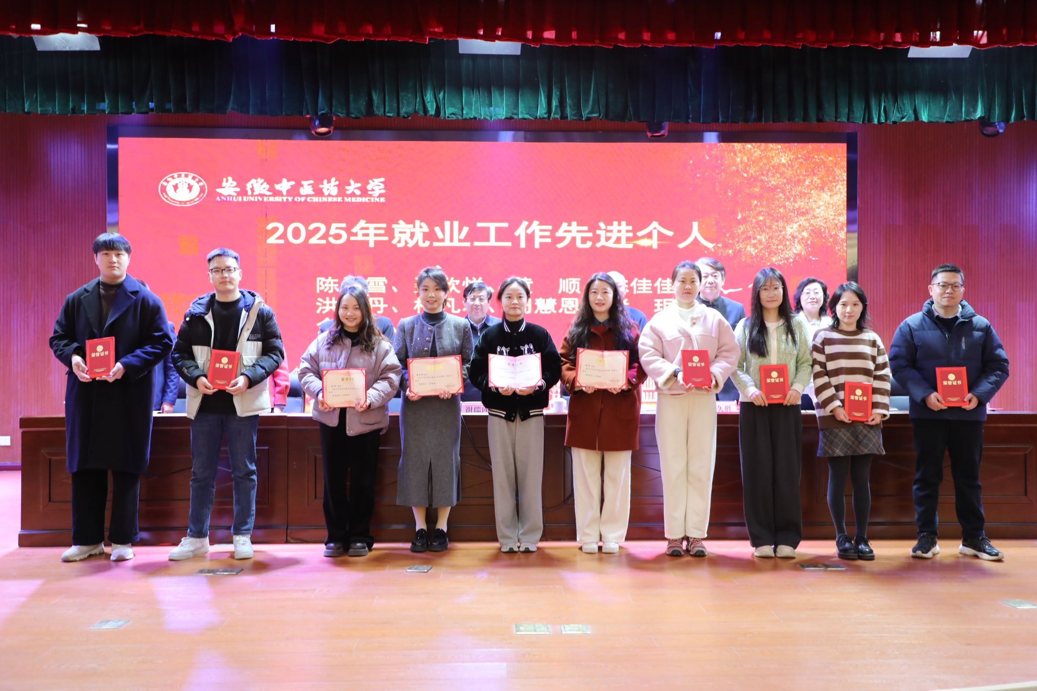 会上,中西医结合学院党委书记李舰作为先进集体代表、药学院聂欣悦老师作为先进个人代表分别发言,分享了宝贵的实践经验。大会对2025年度就业与征兵工作先进集体和先进个人进行了表彰。