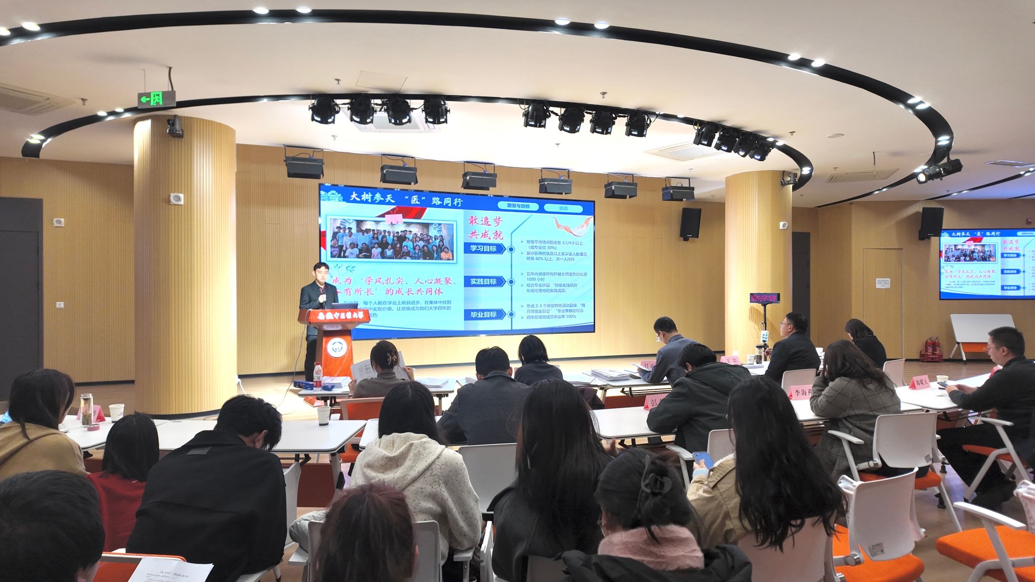 评选现场气氛热烈,17个经各学院遴选推荐的班级依次登台展示。各班级通过PPT汇报、情景短剧演绎、影像纪实分享等形式,从思想引领、学风建设、实践服务、文化营造、文明宿舍创建以及特色创新等多维度,全方位集中展示班级建设的丰硕成果与独特风采。经评审,最终共十个班级脱颖而出,拟获评2024-2025学年校级先进班集体。