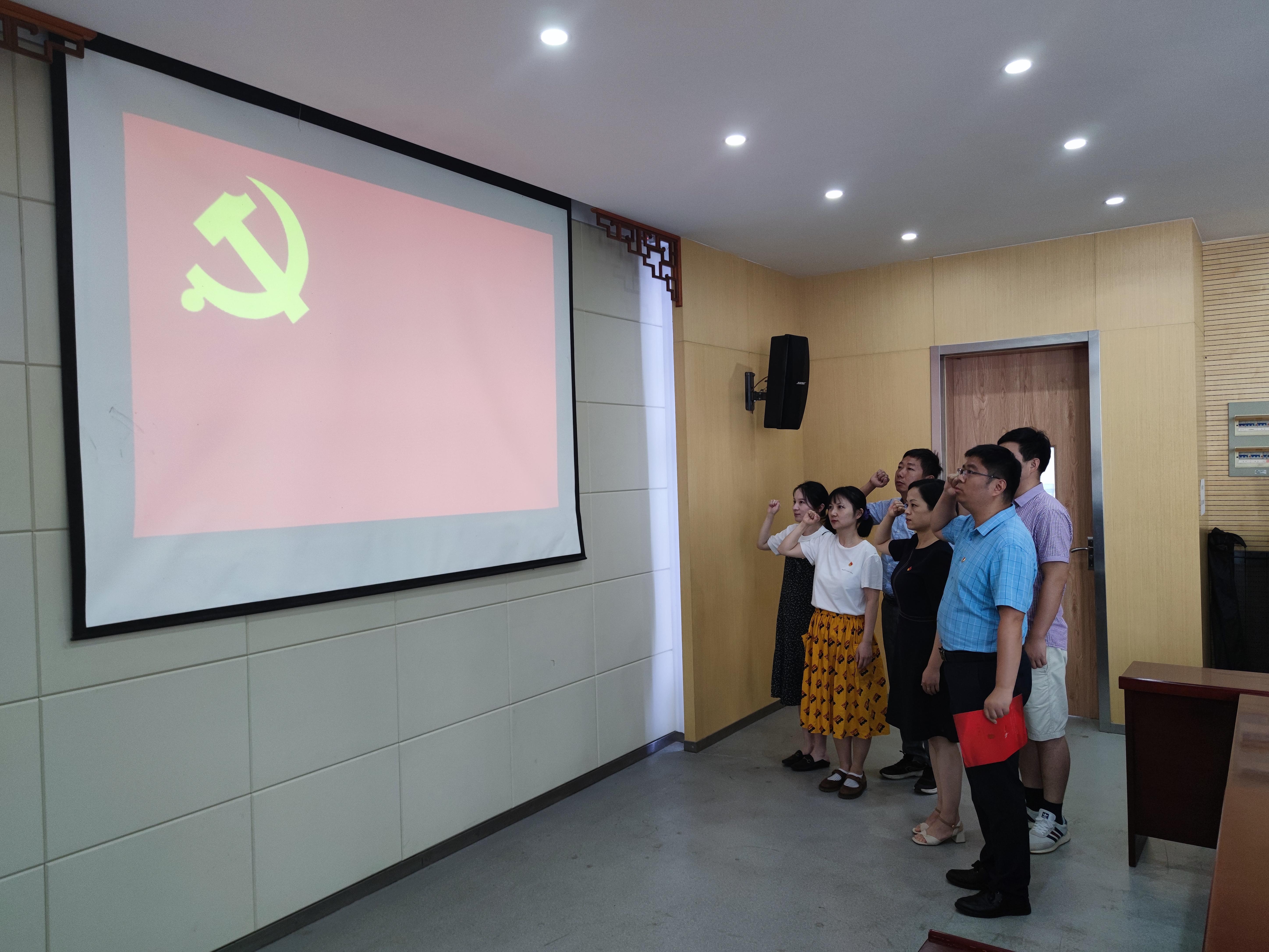 集中学习研讨会后,支部党员为1月到6月加入中国共产党的6名同志过集体政治生日,送上了政治生日贺卡和学习材料,并重温入党誓词。为强化党员的身份意识和责任意识,加强党员党性教育,进一步激发党员的政治热情,强化党员的宗旨意识,让广大党员始终保持党的先进性和纯洁性,充分发挥党员先锋模范作用,学生处党支部专门制定了“党员过政治生日”工作制度,开展“六个一”活动,即赠送一张“政治生日”卡、重温一次入党誓词、赠送一本经典书籍、组织一场爱国主义教育、拍摄一幅党旗合影、发送一条祝福短信。