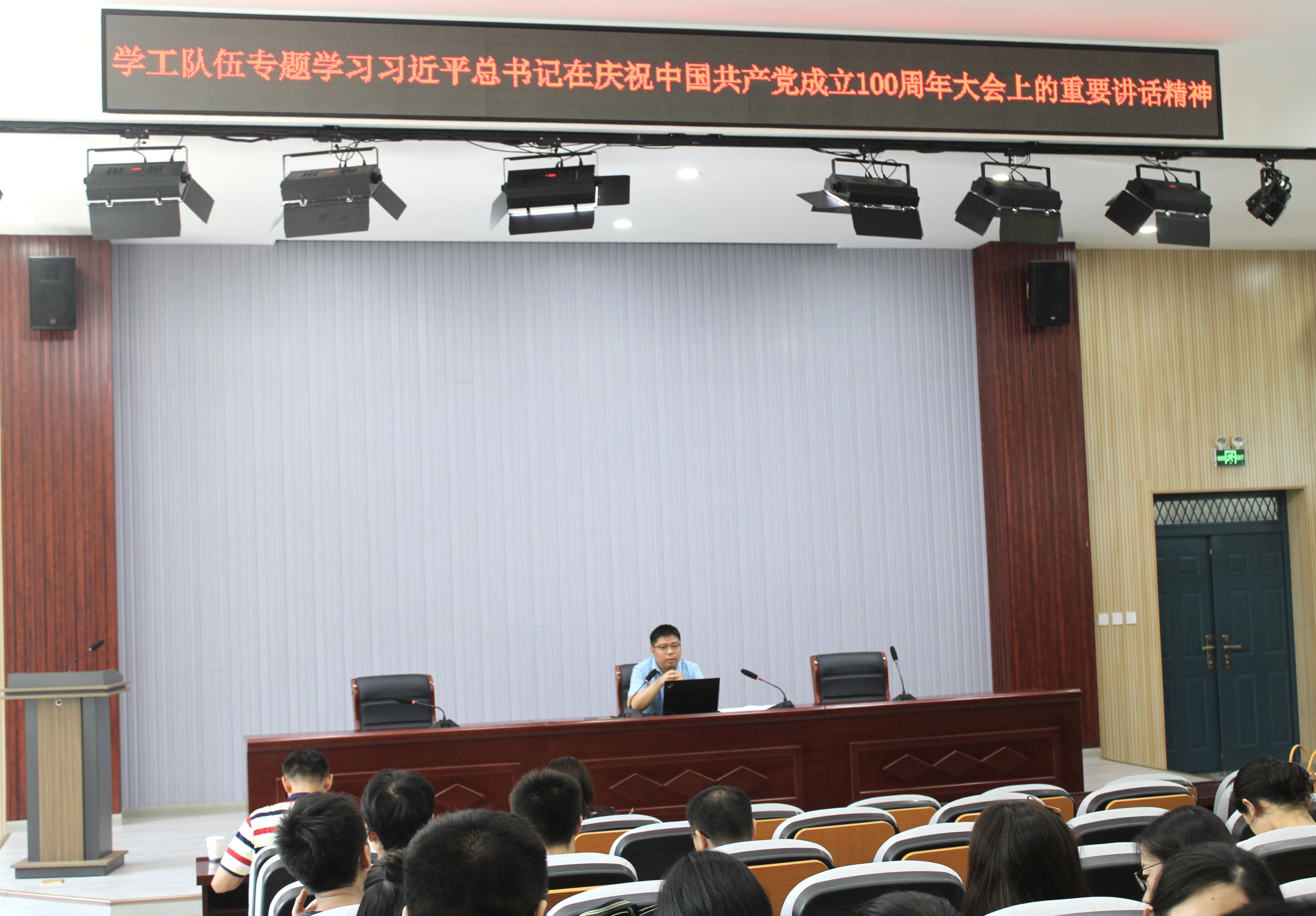 7月9日下午,校学工部专题组织学习习近平总书记在庆祝中国共产党成立100周年大会上的重要讲话精神。各学院分管学生工作领导、学生处全体成员以及全体专兼职辅导员参加学习,会议由学工部副部长詹中华主持。
