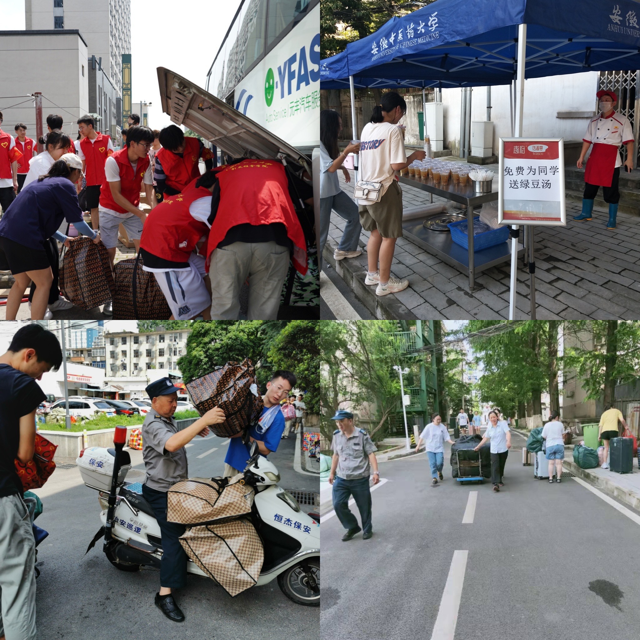 密切配合,安全搬迁。学校相关部门及二级学院密切配合、协同推进,整个搬迁过程组织有力、安全有序、有条不紊。在搬迁过程中,学校始终将做好学生服务放在第一位:为学生提前购置搬迁所需编织袋等物资;各校区搭建帐篷,方便学生搬运行李和应对阴雨天气;安排密集的车次来往于新老校区,保障学生安全、有序出行;为学生提供免费的绿豆汤和矿泉水等防暑降温饮料;涉及学生搬迁的相关学院领导、辅导员以及党员示范岗团员先锋岗志愿者全程在线,保安大叔和宿管阿姨也加入其中,虽然天气炎热,但是大家各司其职,团结协作,始终坚守岗位,通过暖心、温馨的服务,筑起了搬迁工作的坚实后盾。