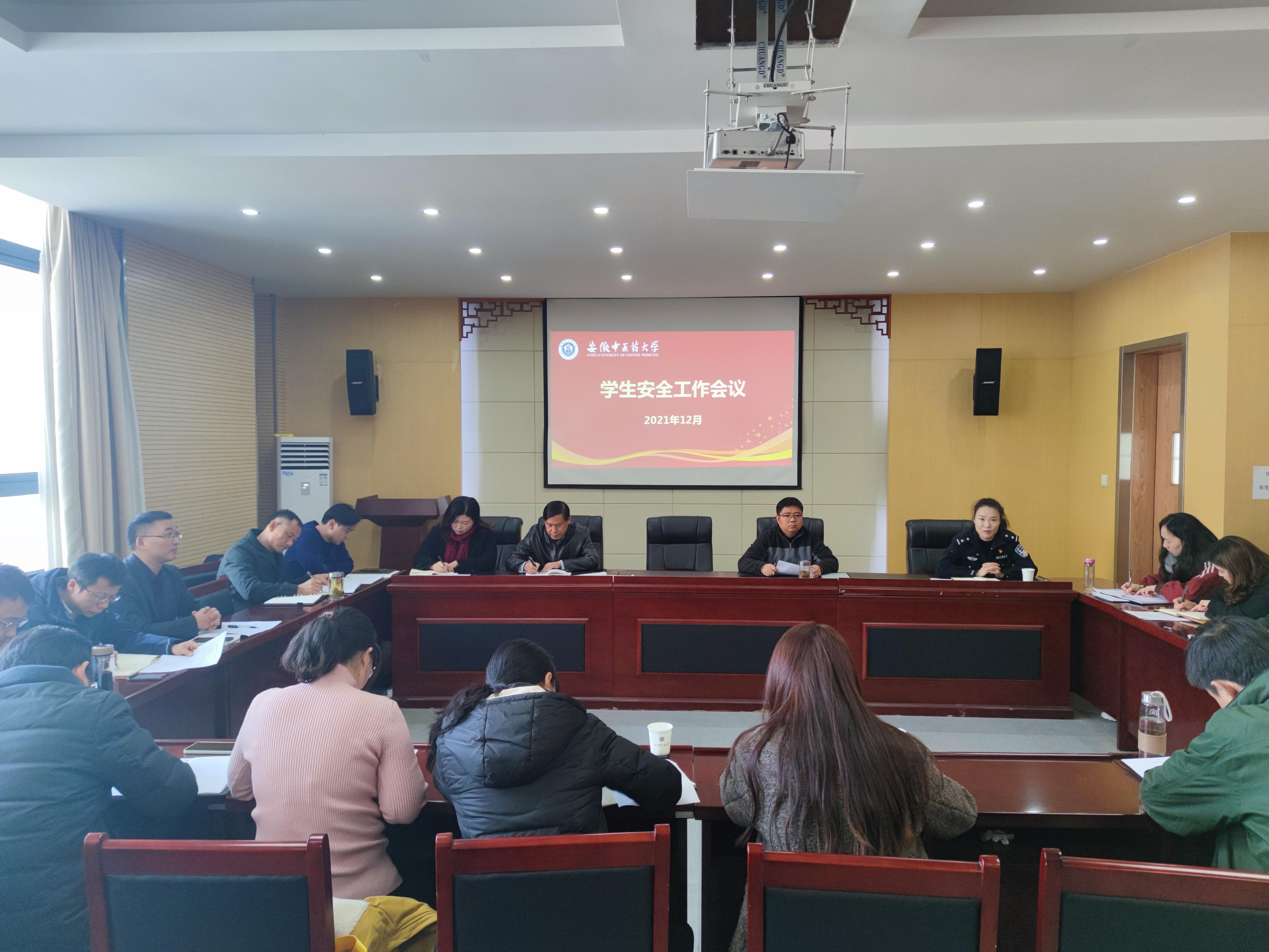 12月13日上午,我校学生安全工作专题会议在惟是楼205会议室召开。学校疫情防控工作办公室、宣传部、学生处、总务处、财务处、保卫处、团委等部门负责人,各二级学院分管副书记以及校“杏林警钟”网络思政工作室成员常艺娟警官参加会议。