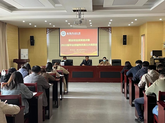 为贯彻落实教育部“政策宣传月”活动,帮助更多大学生知晓各项促就业政策。4月14日,学校组织开展就业创业政策宣讲活动暨2022届毕业班辅导员第三次调度会,学工部部长张军、校团委书记叶兰兰,各学院分管书记、就业秘书和全体2022届毕业班辅导员参加会议。