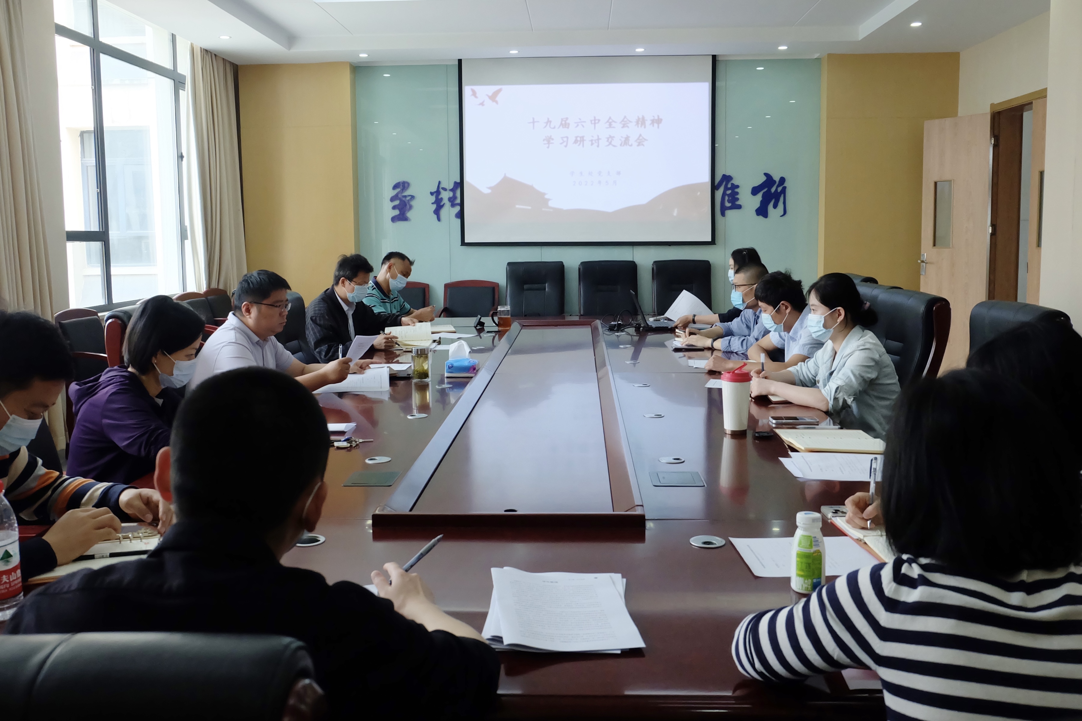5月20日上午,学生处党支部召开党员大会,重点开展学习贯彻党的十九届六中全会精神交流研讨,支部负责人张军主持会议。