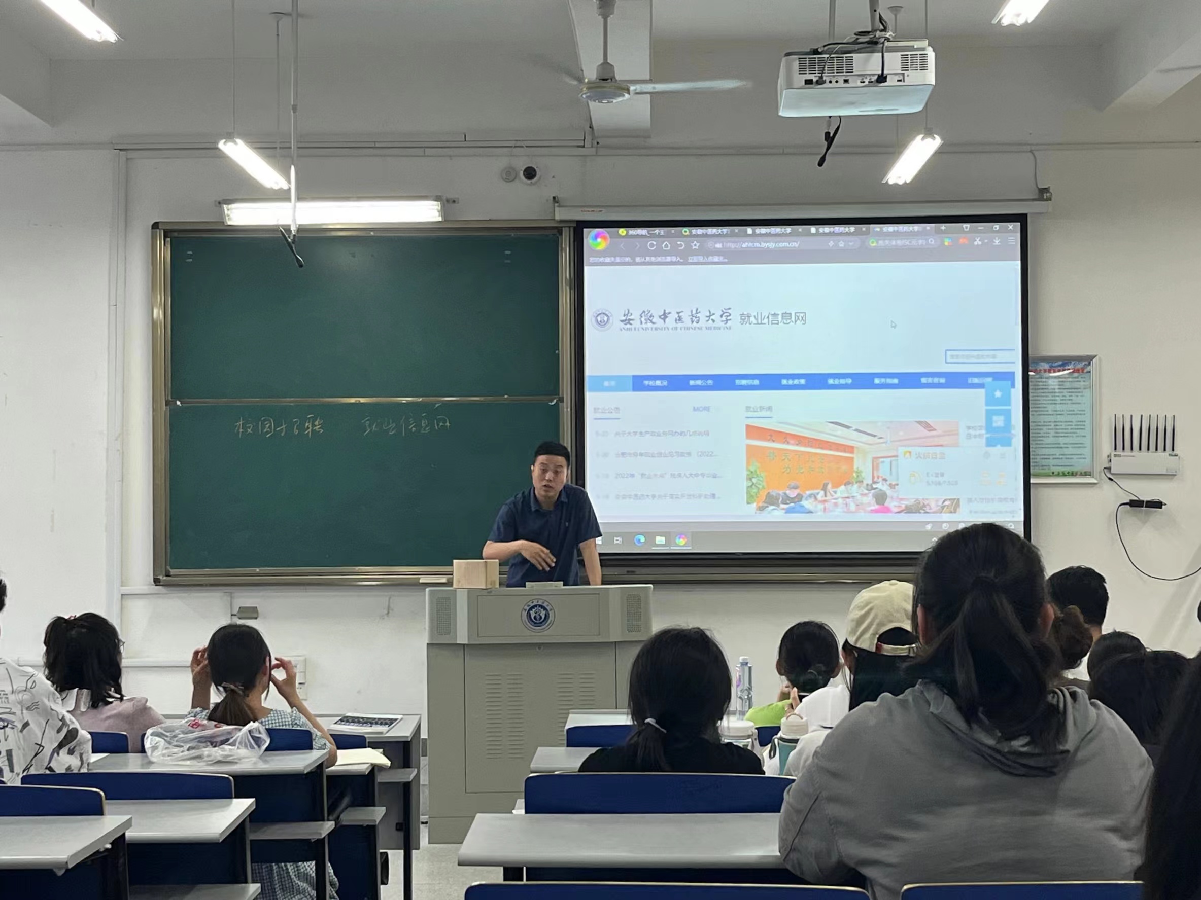 5月25日,支部党员詹钟华、刘睿、谢啸、褚珉分别走进联系学院、班级,开展就业指导、征兵、就业政策宣讲及心理活动宣传。詹钟华带队走访调研针灸推拿学院和中西医结合学院,与毕业班辅导员深入座谈,了解毕业班未就业毕业生求职意愿,提供政策指导和就业帮助。在2020级国际经济与贸易1班,刘睿介绍了2022年最新征兵政策,现场分发征兵宣传手册,详细解读网上征兵系统报名的流程。谢啸面向2019级生物医学工程2班学生,详细介绍了最新就业形势和就业信息网的使用流程,解答了学生提问。在2020级应用心理学2班,褚珉介绍学校心理健康教育月的活动安排,宣传5.25心理游园会的具体内容并派发了游园会打卡券。