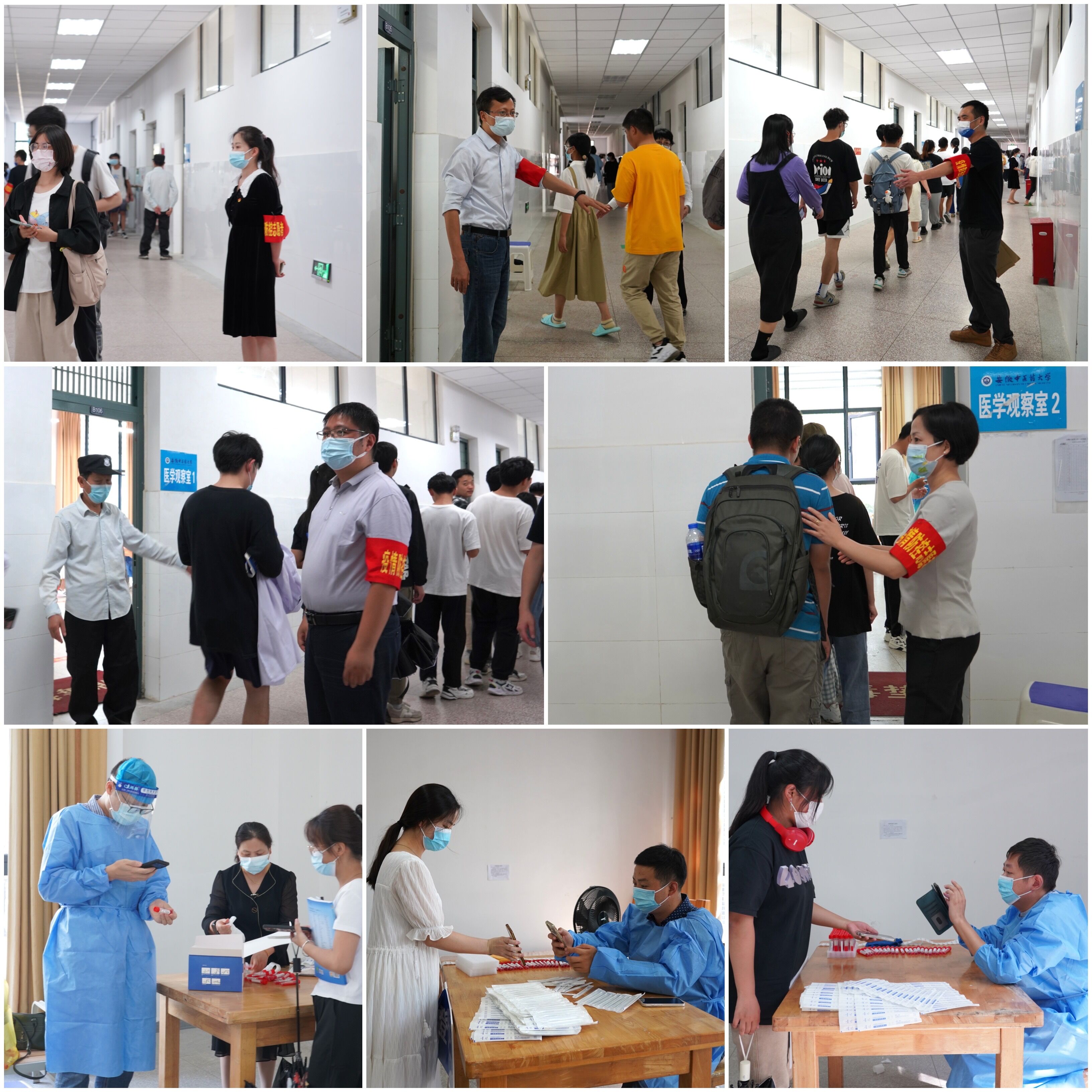 “请大家戴好口罩,提前打开健康码,十个人一组”,在核酸检测现场,支部党员志愿者们配合医护人员维护现场秩序,为现场采样师生扫码登记,引导师生有序进行核酸检测。短短2小时,高效、有序完成了学校师生员工的核酸检测工作。