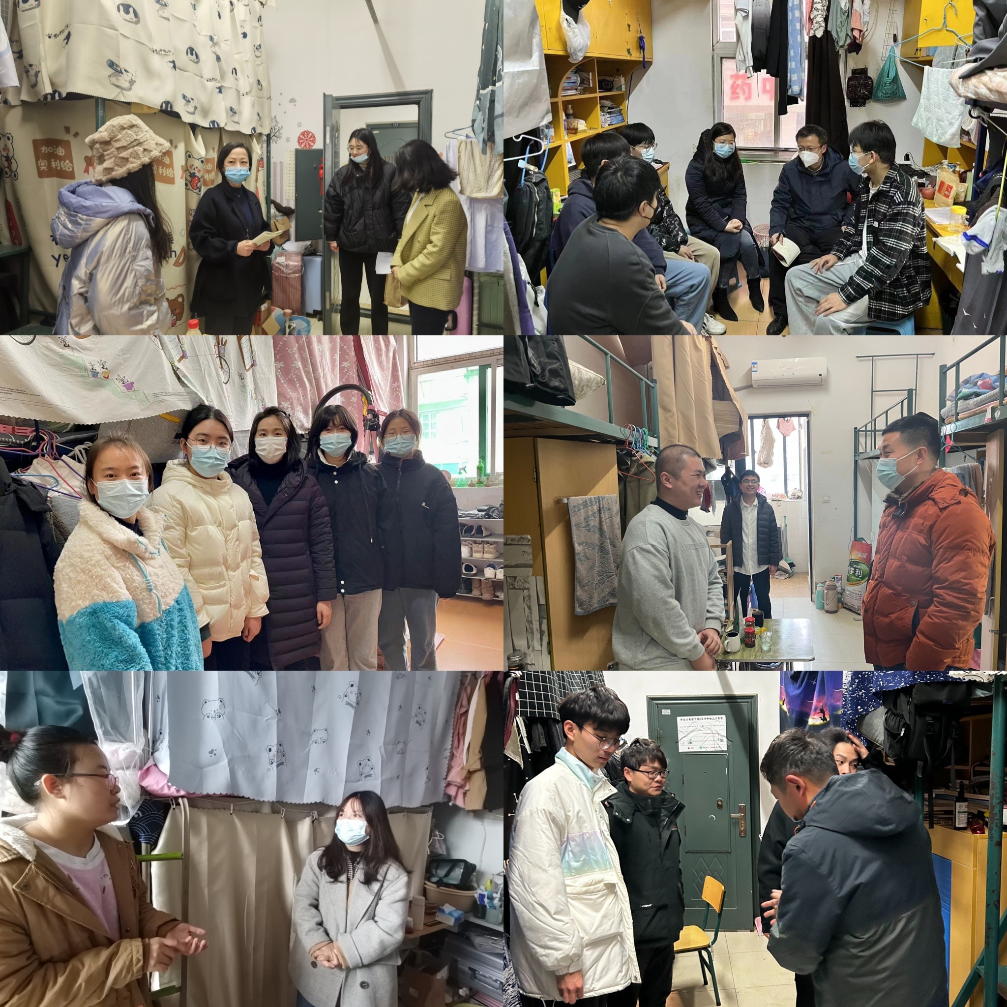 学生处党支部走进少荃湖校区、梅山路校区、史河路校区共10个班级,走访覆盖47间宿舍。走访过程中,支部党员与学生进行了深入的沟通,关切询问大家在校的生活和学习情况,细心叮嘱学生切实增强安全防范意识,引导学生劳逸结合,养成健康的生活习惯,遵守学校疫情防控的相关要求。同时,在疫情防控、期末考试、实习工作、宿舍生活、食堂餐饮等方面征询学生意见与建议,认真听取并详细记录下他们提出的困难、需求和建议。