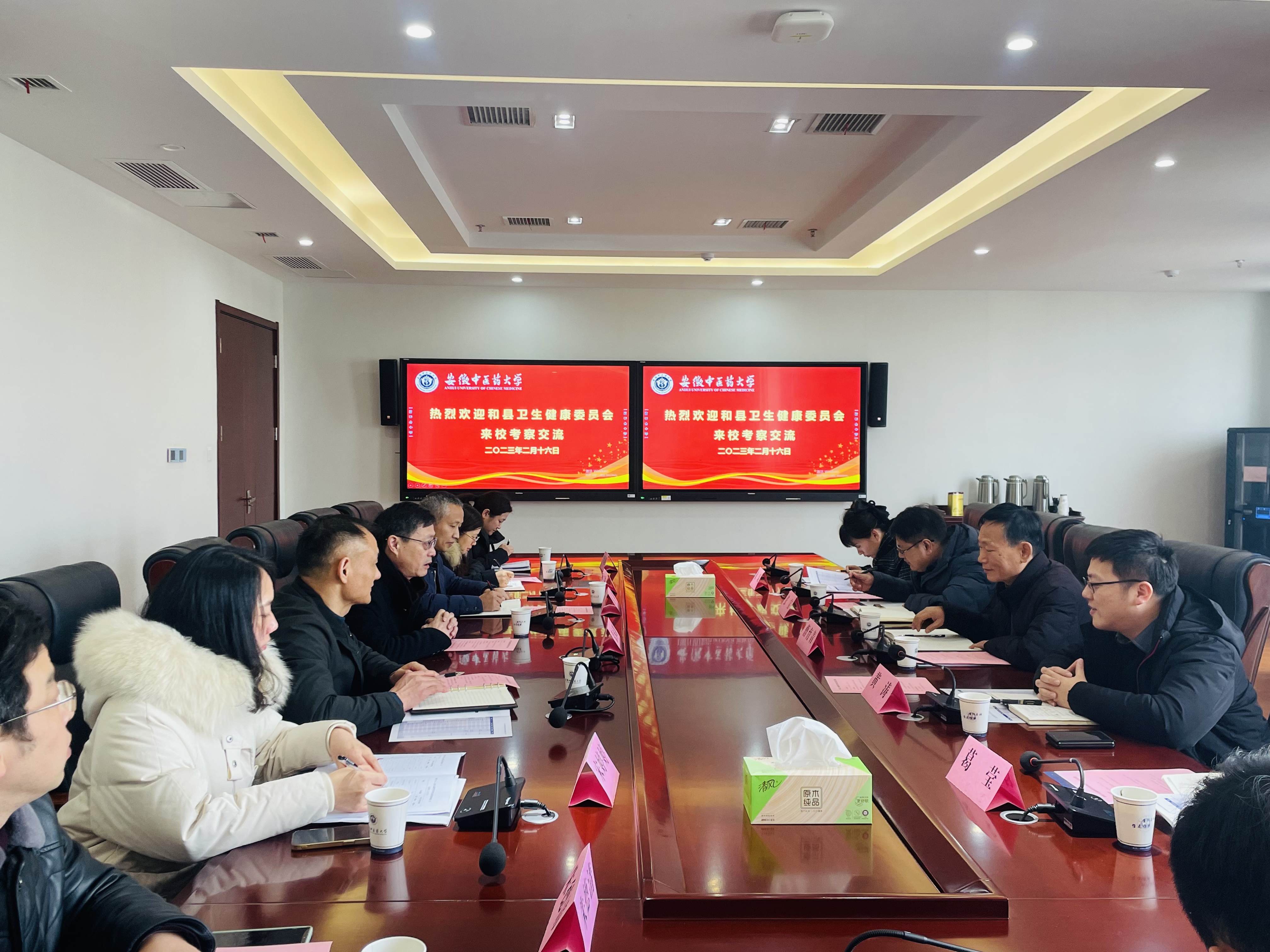 2月16日下午,和县卫生健康委员会曹育青一行来我校考察交流,校党委副书记张永群、学生处处长冯祥、学生处副处长詹钟华及相关临床学院党委副书记参加了交流会。