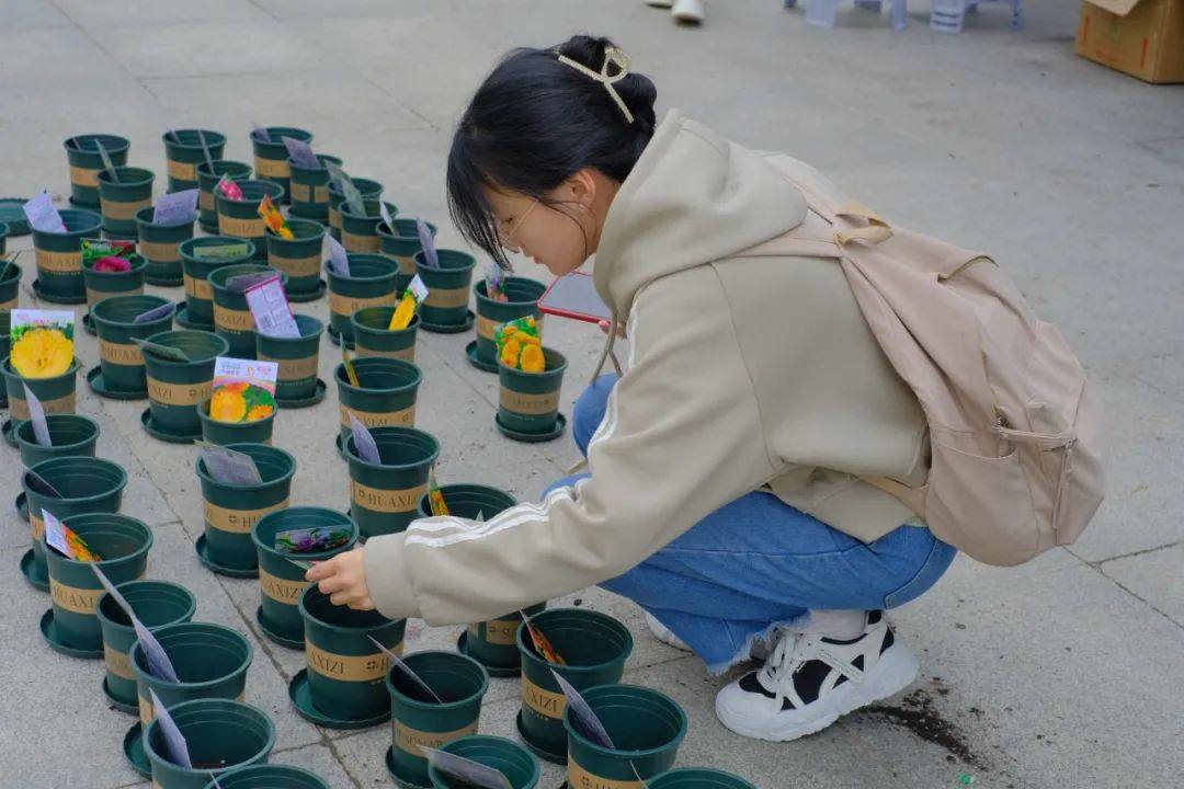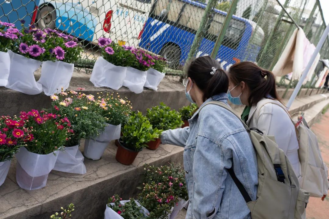 本次活动分为三个环节,分别为认领盆栽体验赋能力量、种苗打卡记录心情感悟、参与花展展示育花成果。29日当天开展第一个环节的活动,同学们在三个校区的活动现场选择出自己心仪的花儿,小心翼翼地捧着鲜花,脸上露出灿烂无比的笑容。学校还专门邀请花卉园艺志愿者为同学们现场讲解种植小贴士,帮助大家更好地培育自己的花卉花种,既让植物有了归属,也给同学们增加一份责任感,去感悟生命,期待收获。