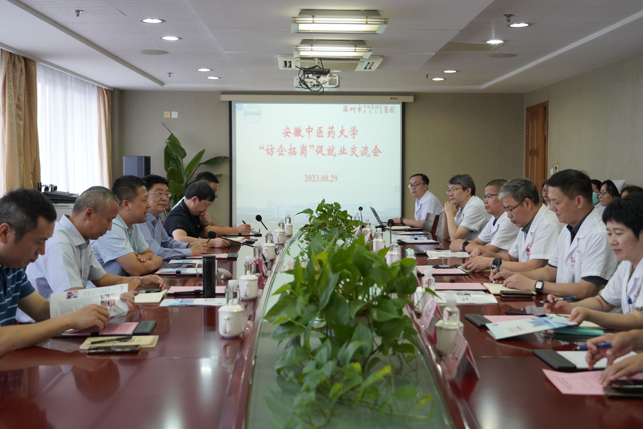 医院党委书记杨文忠对安徽中医药大学一行的到来表示欢迎及感谢,他表示随着中国中医科学院大学落户苏州吴中,医院将开启新的发展,也将为中医药人才的培养与发展提供更加广阔的空间与平台。医院院长钱建学详细介绍了医院一院两区的规划,他指出在目前良好政策激励下,医院正有计划的推进三级甲等医院的建设工作,在这过程中希望能得到学校的支持,填补医院硕士学位点工作的空白,引进中医药优秀人才进一步提升医疗和护理质量。