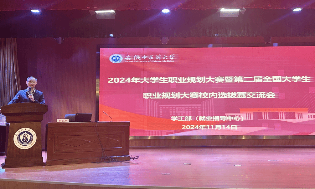 为贯彻落实党中央、国务院决策部署,加强我校生涯规划与就业指导,增强学生职业规划意识,促进高质量充分就业,11月14日下午,学生处(就业指导中心)举办2024年大学生职业规划大赛暨第二届全国大学生职业规划大赛校内选拔赛交流会。会议邀请了全国首届大学生职业规划大赛总决赛优秀作品指导老师和选手分享参赛经验。各学院分管学生工作领导、辅导员和学生代表参会。